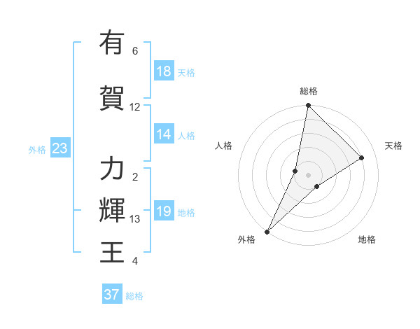 有賀 力輝王さんを姓名の画数から五運を鑑定