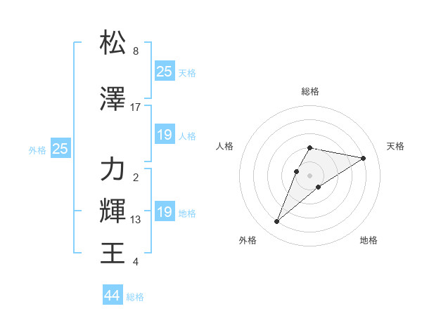 松澤 力輝王さんを姓名の画数から五運を鑑定