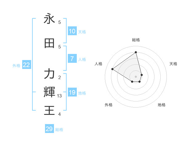 永田 力輝王さんの総格は29画の4点!