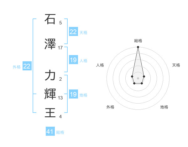石澤 力輝王さんを姓名の画数から五運を鑑定