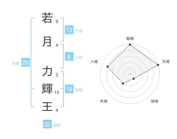 若月 力輝王さんの天格は13画の5点!