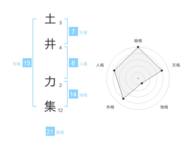 土井 力集さんの総格は21画の5点!