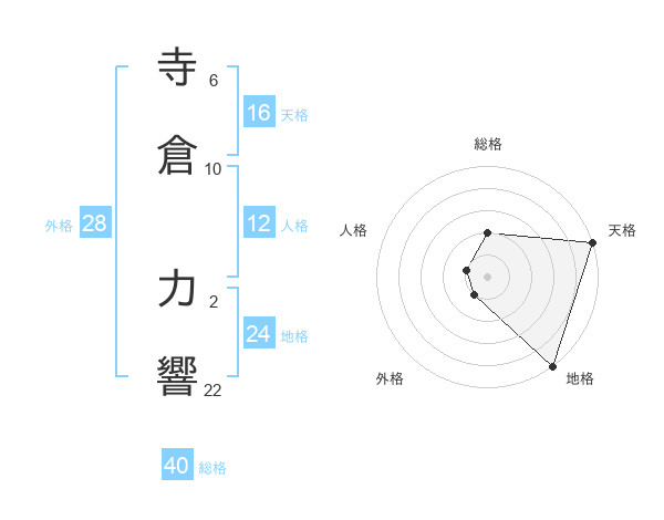 寺倉 力響さんの総格は40画の2点!