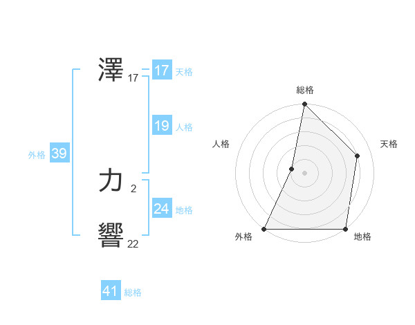 澤 力響さんの外格は39画の5点!