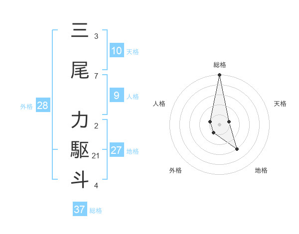 三尾 力駆斗さんの総格は37画の5点!