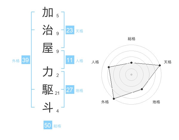 加治屋 力駆斗さんの総格は50画の2点!