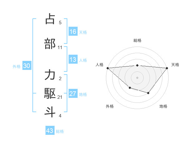 占部 力駆斗さんを姓名の画数から五運を鑑定