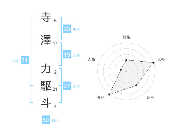 寺澤 力駆斗さんを姓名の画数から五運を鑑定