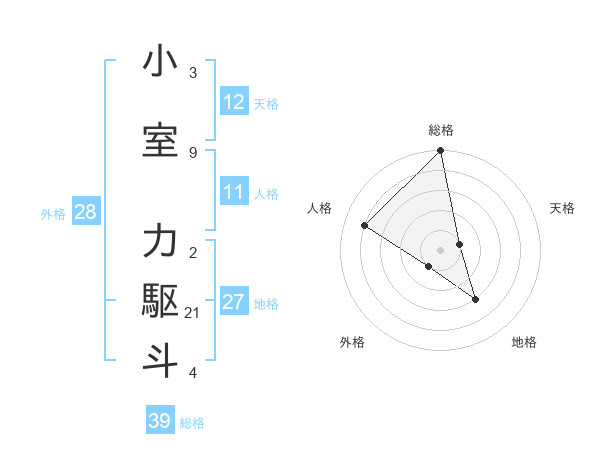 小室 力駆斗さんを姓名の画数から五運を鑑定