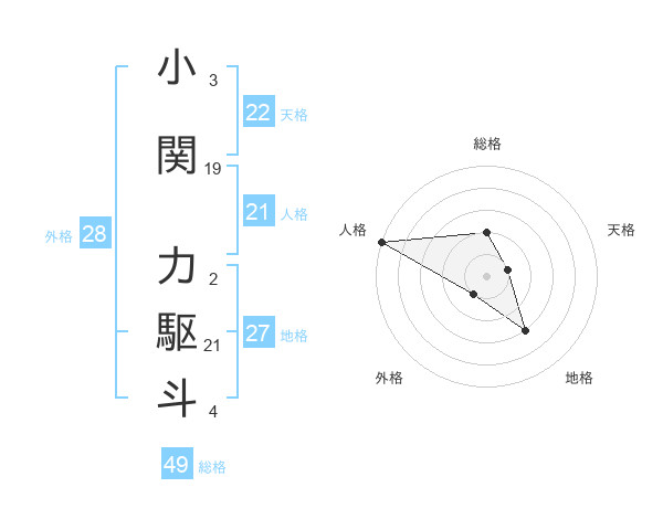 小関 力駆斗さんを姓名の画数から五運を鑑定
