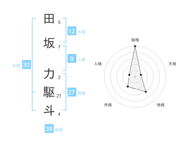 田坂 力駆斗さんを姓名の画数から五運を鑑定