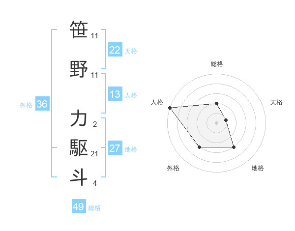 笹野 力駆斗さんの総格は49画の2点!