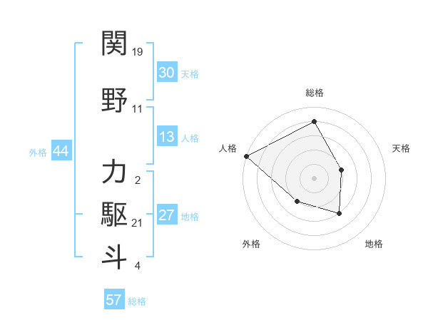 関野 力駆斗さんを姓名の画数から五運を鑑定