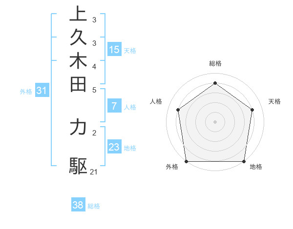 上久木田 力駆さんの総格は38画の4点!