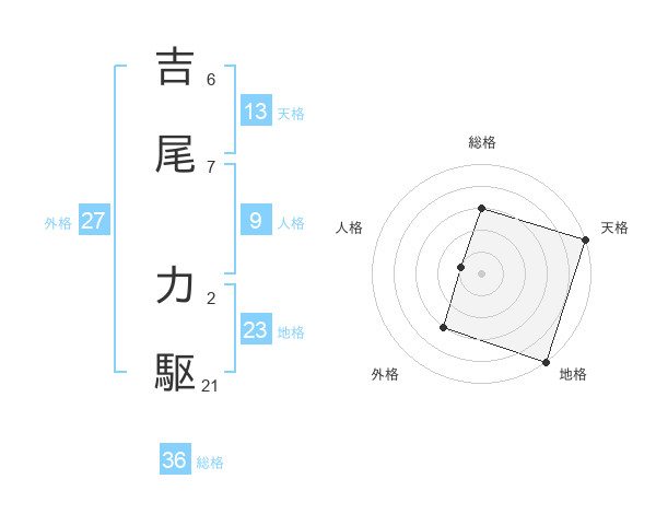 吉尾 力駆さんの天格は13画の5点!