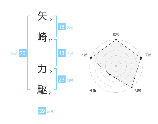 矢崎 力駆さんを姓名の画数から五運を鑑定