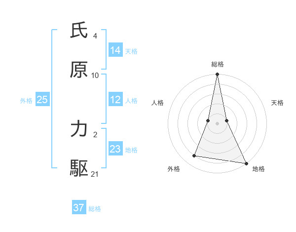 氏原 力駆さんを姓名の画数から五運を鑑定