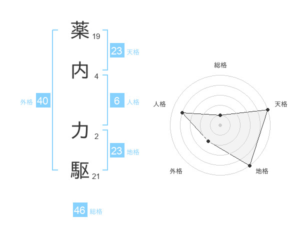薬内 力駆さんの地格は23画の5点!