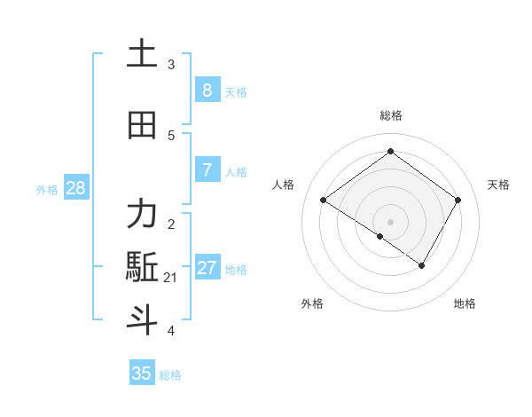 土田 力駈斗さんを姓名の画数から五運を鑑定