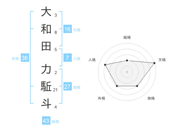 大和田 力駈斗さんの天格は16画の5点!