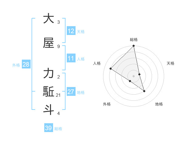 大屋 力駈斗さんの総格は39画の5点!