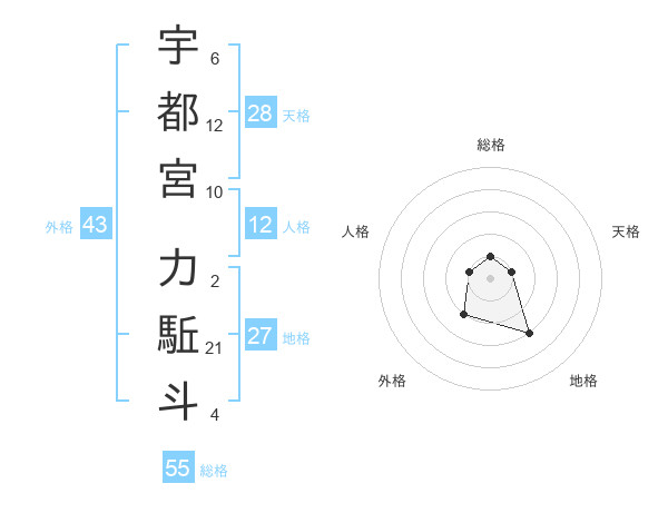 宇都宮 力駈斗さんを姓名の画数から五運を鑑定