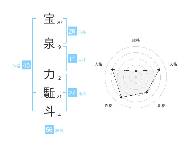 宝泉 力駈斗さんを姓名の画数から五運を鑑定