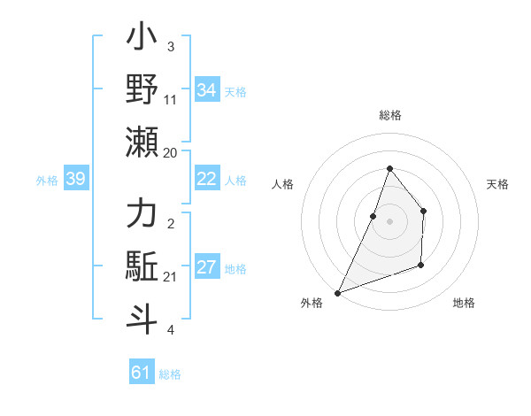 小野瀬 力駈斗さんを姓名の画数から五運を鑑定