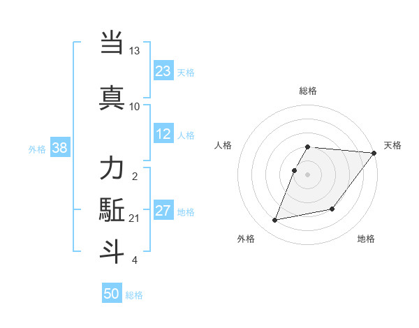 当真 力駈斗さんを姓名の画数から五運を鑑定