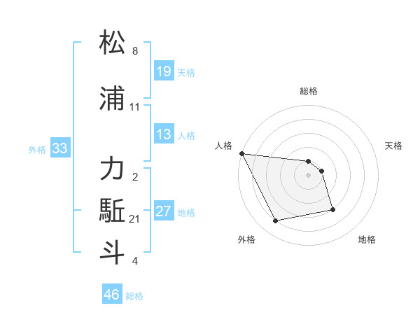 松浦 力駈斗さんを姓名の画数から五運を鑑定