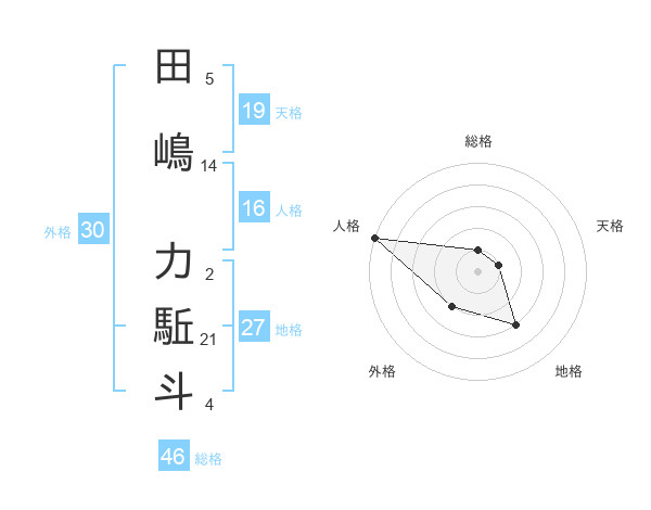 田嶋 力駈斗さんを姓名の画数から五運を鑑定