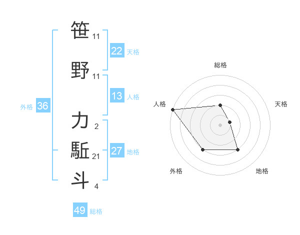 笹野 力駈斗さんを姓名の画数から五運を鑑定