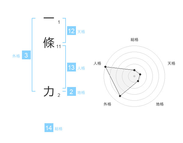 一條 力さんの総格は14画の1点!