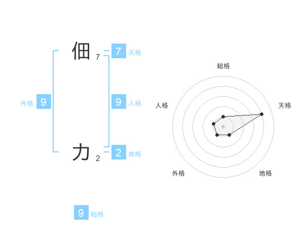 佃 力さんの天格は7画の4点!