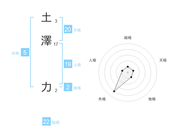土澤 力さんを姓名の画数から五運を鑑定