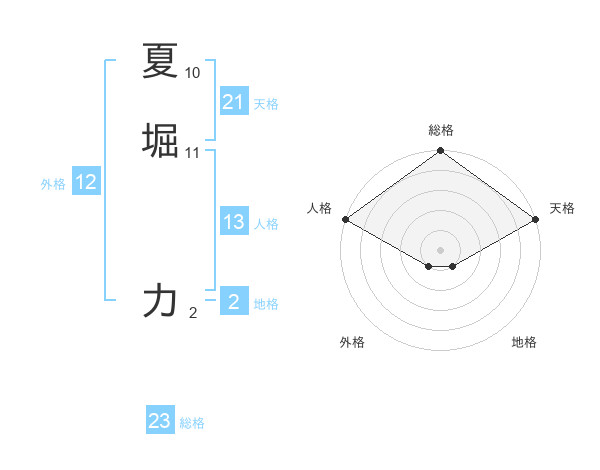 夏堀 力さんの天格は21画の5点!