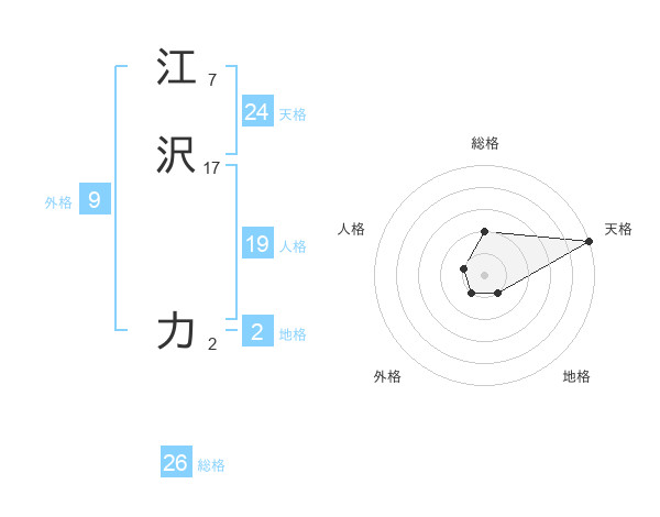 江沢 力さんの天格は24画の5点!