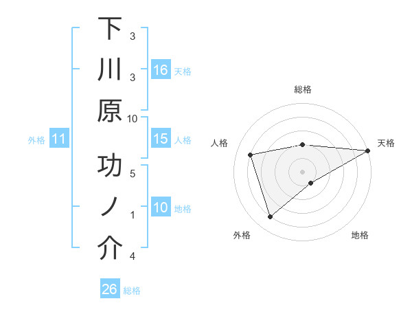 下川原 功ノ介さんを姓名の画数から五運を鑑定