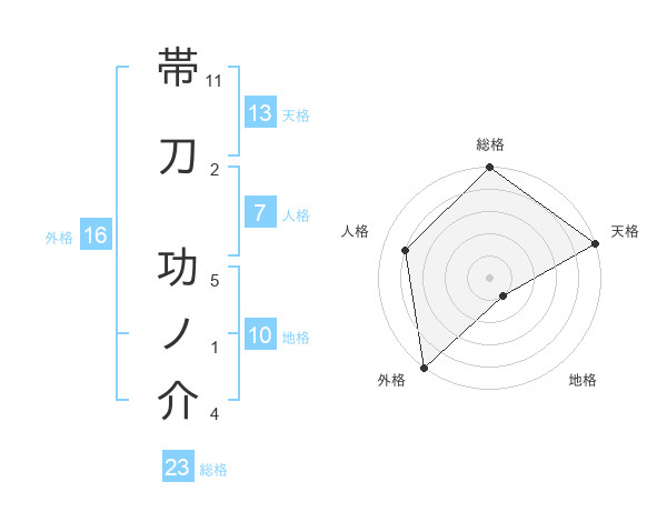帯刀 功ノ介さんを姓名の画数から五運を鑑定