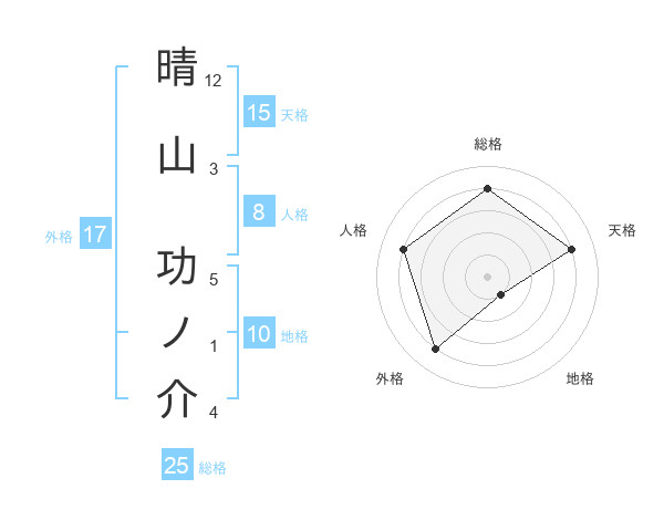 晴山 功ノ介さんの総格は25画の4点!
