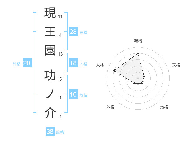 現王園 功ノ介さんを姓名の画数から五運を鑑定