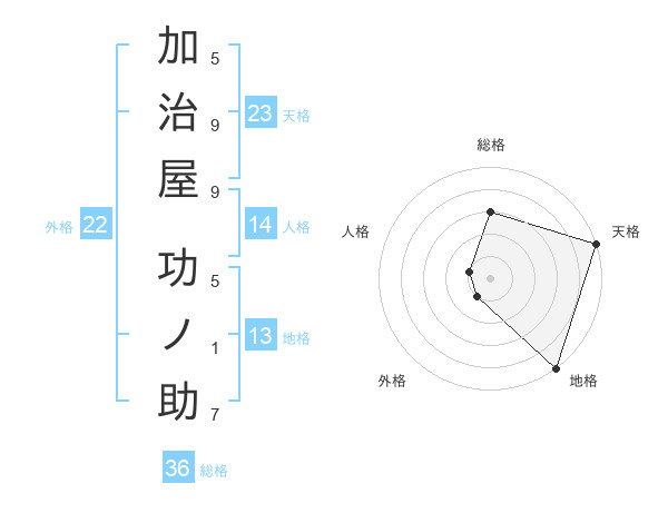 加治屋 功ノ助さんを姓名の画数から五運を鑑定