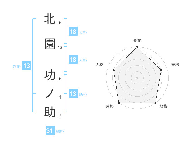 北園 功ノ助さんを姓名の画数から五運を鑑定