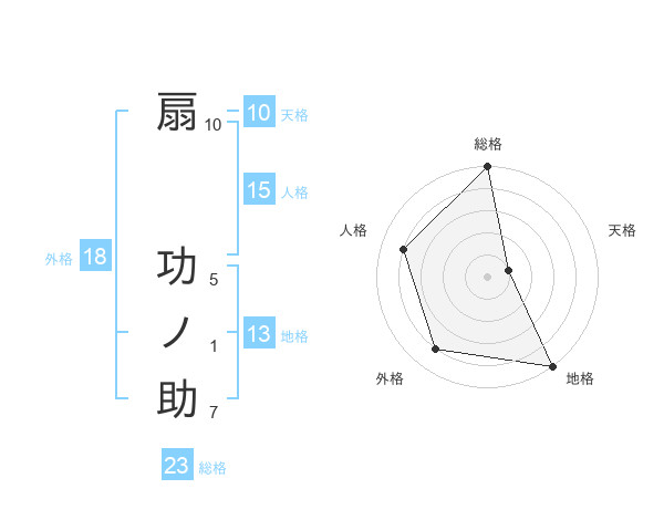 扇 功ノ助さんの総格は23画の5点!
