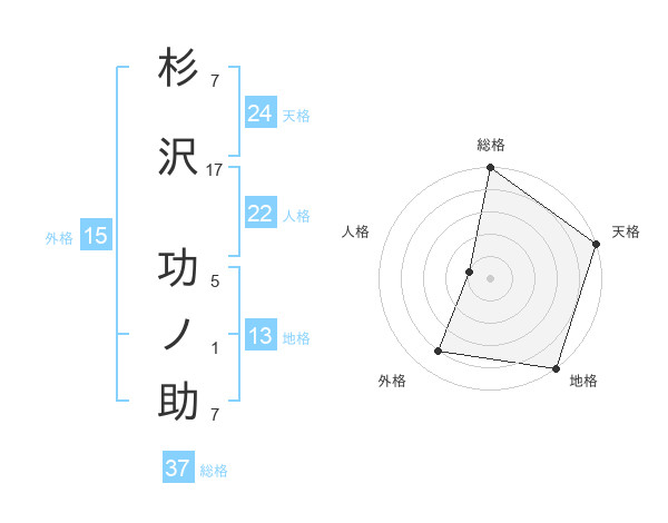 杉沢 功ノ助さんを姓名の画数から五運を鑑定