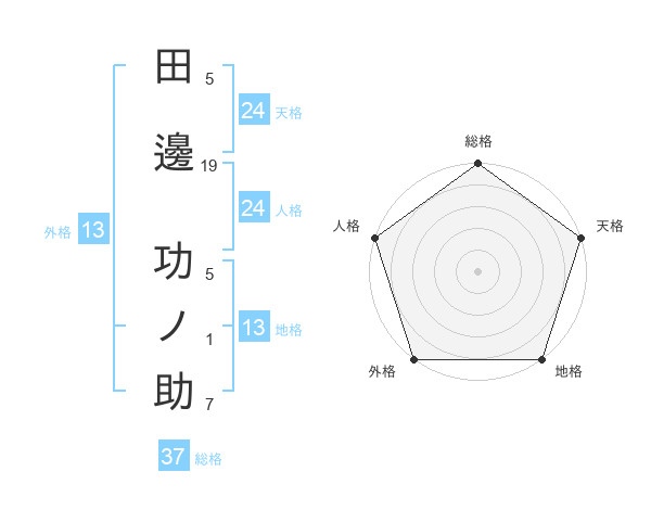 田邊 功ノ助さんを姓名の画数から五運を鑑定