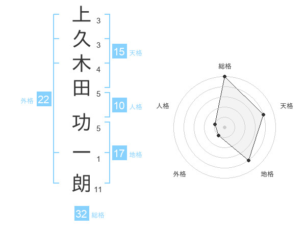 上久木田 功一朗さんの総格は32画の5点!