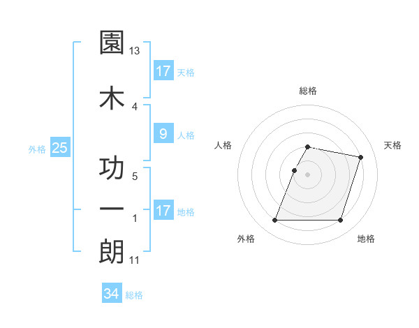 園木 功一朗さんを姓名の画数から五運を鑑定