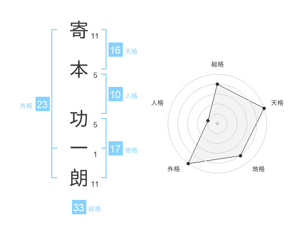 寄本 功一朗さんの総格は33画の4点!