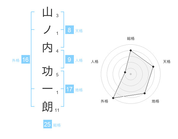 山ノ内 功一朗さんを姓名の画数から五運を鑑定